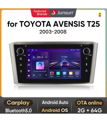 Junsun AI CarPlay 4G Android 13 Autoradio per Toyota Avensis T25 2003 2004 2005 2006 2007 2008 Lettore multimediale WiFi GPS Navi