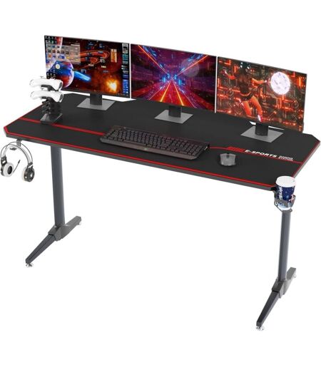 SOGES Scrivania Gaming 140 60 cm,Scrivania da Gioco, Grande Scrivania Gaming Desk per Laptop PC,Tavolo Gioco con Tappetino per Mouse,Computer Gamer pro