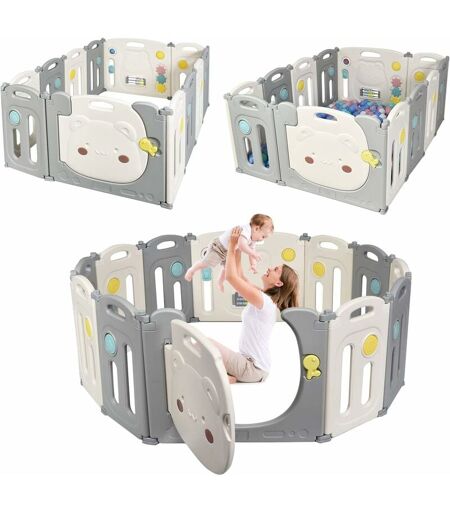 INFORMAZIONI: Rilascia le mani della mamma: L'uso delle recinzioni da gioco per bambini rende inutile che le madri guardino sempre i propri figli, le mamme sono libere di fare le proprie cose e hanno il tempo di pulire e cucinare, i bambini possono dormire, imparare, camminare e altro nel box, che può aiutare i bambini a crescere rapidamente. Facile da montare: 14 pezzi box per bambini pieghevoli, facili da montare, creano il loro spazio di gioco per i bambini, i piedi sono dotati di ventose in silicone, che rendono i box per bambini saldamente fissati al pavimento, quando non in uso, può essere smontato e piegato senza occupare troppo spazio, il design pieghevole è facile da riporre e trasportare. Aiuta i bambini a crescere: Tre file di abacus colorati sul recinto del gioco, tre rulli, una palla da un giro, un pulsante audio BB, un cursore traccia, il che rende flessibili le dita dei bambini, aiutano i bambini a calcolare, il che promuovono lo sviluppo intellettuale dei bambini ...