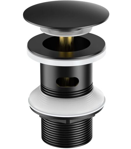 AURALUM Piletta di scarico Click Clack in acciaio inox, Tonda Universale 1 1/4" Pop-up Piletta con Troppo pieno per Lavabo Bagno Nero