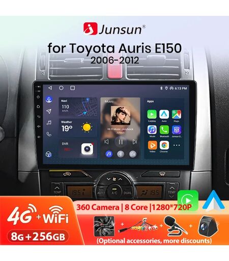 Junsun Wireless CarPlay Android Auto per Toyota Auris E150 2006-2012 IPS Android Autoradio con Navigazione Online DSP Suono RDS ...