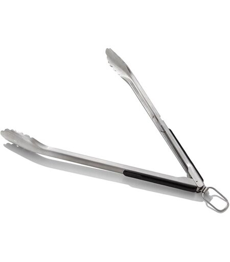 Pinze in acciaio inox spazzolato Oxo con punte ondulate per afferare meglio il cibo. Ideali per girare le carni e le verdure sulla griglia. Apri bottiglia incorporato. - Facile da appendere vicino alla griglia - Manici con prese morbide e antiscivolo - Lavabile in lavastoviglie - Lunghezza: 47,5 cm ...