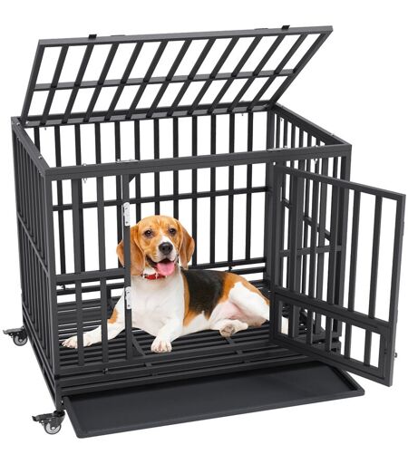 VEVOR Gabbia per Cani con Ruote 107x77x94 cm Gabbia da Trasporto in Metallo per Cucciolo Taglia Media e Grande con Ruote Bloccabili 3 Porte, Gabbiette per