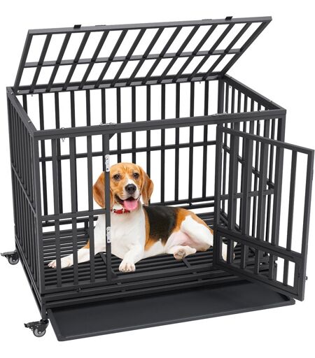 VEVOR Gabbia per Cani con Ruote 119x81x99 cm Gabbia da Trasporto in Metallo per Cucciolo Taglia Media e Grande con Ruote Bloccabili 3 Porte, Gabbiette per