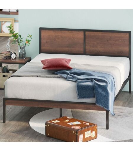 ZINUS Mory 30 cm, Telaio del letto a piattaforma in metallo e legno con testiera divisoria, Supporto per doghe in legno, Facile da montare, Marrone, 140 x