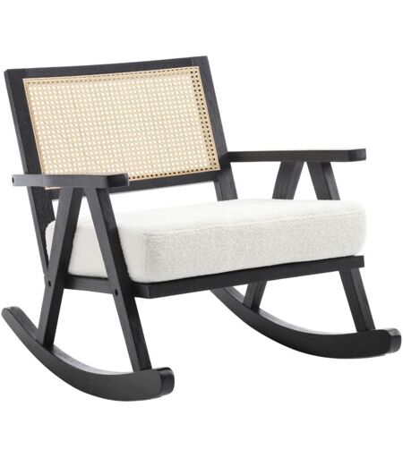 WAHSON OFFICE CHAIRS - Sedia a Dondolo Moderna in Rattan Poltrona a Dondolo Imbottita in Lino Poltroncina in Legno Massiccio per Soggiorno, Nero