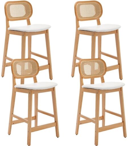 WAHSON OFFICE CHAIRS Wahson Set di 4 Sgabelli da Bar in Rattan Sgabelli Cucina Imbottite con Cuscino in Ecopelle Sedia da Bar Retrò Sgabelli Alti con Gambe in Legno,
