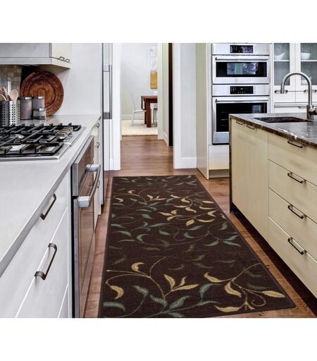 NONE Ottomanson Passatoia dal design contemporaneo con motivo foglie, collezione Ottohome, fondo in gomma, 50 cm x 150 cm, colore: Marrone