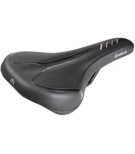 Traduzione dall´inglese all´italiano:Componenti per biciclette - Selle.Sella VELO Traveller.Sella da trekking, Velo.- adatta per viaggi, misura M, 267x152 mm, nero lucido con strisce argentate, su cartoncino. ...