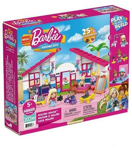 Mega Barbie Casa di Malibu della Mattel per costruire la tua casa dei sogni decorando ogni stanza con mobili e altri accessori per giochi di ruolo. Preparati per un pigiama party con le tue 2 micro-bambole Barbie e un adorabile cucciolo. Quindi, vai allo studio di vlogging per creare video divertenti e scopri che puoi essere qualsiasi cosa con Barbie. Progettato per i principianti, questo set di costruzione è facile da costruire e offre un gioco narrativo in ogni fase della costruzione. Caratteristiche: Età consigliata: da 5 anni Il set di costruzione include: 2 micro-doll Barbie, 1 cucciolo, 2 uccelli, 303 mattoncini da costruzione con pezzi speciali e accessori e 5 basi su cui costruire. La Casa di Malibu contiene: la cucina, la camera da letto, il giardino, l'ingresso e lo studio di vlogging. 9 accessori moda per la personalizzazione. I mattoncini si combinano con tutti i set di costruzione Barbie e Mega Construx e sono compatibili con altre marche di nomi. ...
