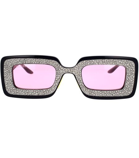 Tenetevi forte, ecco a voi gli Occhiali da Sole Gucci GG0974S 001. Concept presentato originariamente nella sfilata PE17 e rilanciato nel 2021 con modelli preziosi ed eclettici dedicati a una donna attenta allo stile e ai dettagli. Montatura dalla forma rettangolare ultra allungata in acetato, impreziosita da cristalli applicati a mano. Audace logo GG sulle aste. Il modello è disponibile con lenti rosa. Le tre tonalità di montatura, strass e lenti creano un effetto visivo tridimensionale ultra moderno. ...