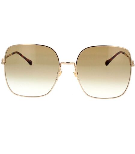 Per la prima volta l’iconico Morsetto Gucci è reinterpretato nella categoria Eyewear per un tocco di eleganza classica. Il logo è presente nei modelli in metallo, plastica e combi, che vantano tutti lo stesso stile raffinato. Montatura interamente in metallo con classico frontale squadrato oversize. Aste impreziosite dal dettaglio Morsetto e da un discreto logo con scritta Gucci inciso. Il modello è disponibile con lenti dai colori caldi che contrastano con il metallo dorato del frontale. ...