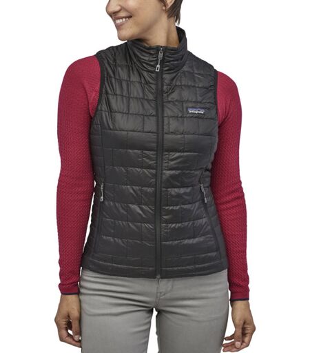 Gilet Primaloft da donna Nano Puff Vest di Patagonia estremamente comprimibile, leggero e isolante, in materiale resistente al vento e impermeabile, con calda imbottitura. Realizzato con tessuti ecologici a beneficio ambientale. in 22D Ripstop antivento e resitente finitura DWR idrorepllente che allontana l'acqua imbottitura in Primaloft Gold Eco che mantiene il calore e traspira materiali utilizzati certificati bluesign® collo alto protettivo zip frontale a tutta lunghezza tasche laterali con zip giromanica elastico avvolgente taglio più lungo sul retro protettivo vestibilità regolare ...