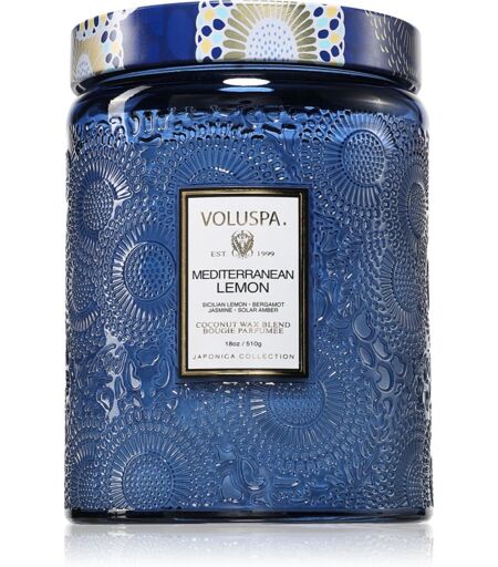 VOLUSPA Japonica Mediterranean Lemon, 510 g, Candele profumate Profumo per ambienti, La candela profumata VOLUSPA Japonica Mediterranean Lemon profuma la tua casa con una fragranza meravigliosa per creare un'atmosfera accogliente, grazie alla quale ti sentirai sempre alla grande. Caratteristiche: profumo fresco profumo di agrumi profumo fruttato profumo estivo prodotto vegano confezione di design combustione lunga prodotto a mano combustione pura Composizione: con contenuto di cera di cocco stoppino di cotone Modo d’uso: Appoggiare la candela su una superficie sufficientemente resistente al calore. Non lasciare bruciare per più di 4 ore. Non lasciare mai bruciare la candela fino alla fine. Non lasciare mai la candela accesa incustodita e in prossimità di oggetti facilmente infiammabili. Tenere fuori dalla portata di bambini e animali domestici. Consentire sempre alla candela di bruciare almeno fino a quando l’intero strato superiore non si sarà sciolto. Ciò impedirà la formazione della depressione indesiderata nella cera. ...