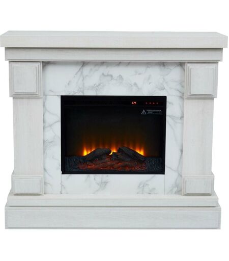 TEAMSON HOME Camino elettrico indipendente da 48' con mensola del camino, touch screen, telecomando e fuoco istantaneo regolabile, marmo bianco VNF-0015WM-EU