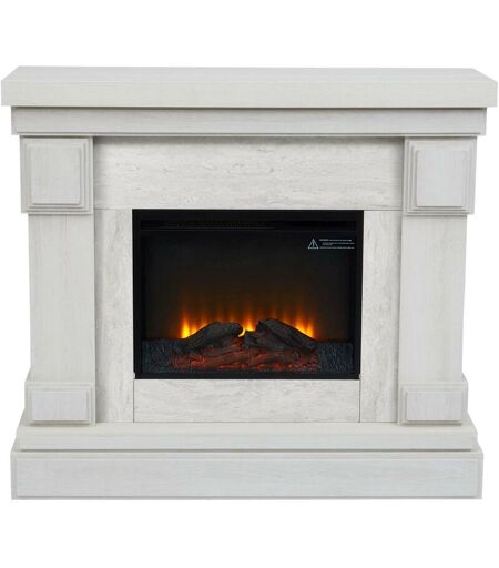 TEAMSON HOME Caminetto elettrico a libera installazione 48' con travetto, Hestia telecomando e fuoco istantaneo regolabile, effetto marmo grigio VNF-00115GM-EU