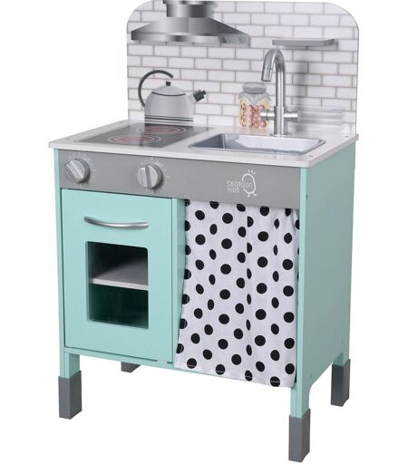 Dai al tuo cuoco in erba il suo spazio culinario con la cucina giocattolo in legno Teamson Kids Little Chef Philly. Questa elegante cucina interattiva in legno è disponibile in blu acqua brillante e bianco, con una porta della cucina che si apre, un'area di stoccaggio e una tenda sotto il lavello che è ideale per conservare cibo finto e accessori (non inclusi).La nostra cucina finta per bambini Philly è perfetta per tutti i piccoli chef in erba con un'immaginazione, con un design funzionale e interattivo, questa cucina in legno è dotata di due quadranti del forno rotanti e a scatto, due induzione stampati fornelli, due ganci portaoggetti, un lavello removibile con rubinetto e un "splash back". Il nostro set da cucina per bambini è dotato anche di un ripiano portaspezie per migliorare il gioco e tenere occupate le manine e l'immaginazione! Questa resistente cucina da gioco in legno è sicura per i bambini e facile da pulire. Le istruzioni facili da seguire significano che i bambini e ...