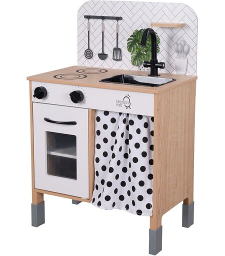 TEAMSON KIDS Little Chef Set cucina giocattolo in legno interattivo contemporaneo con gambe regolabili in altezza Gioco di imitazione Nero/Bianco TD-13554C