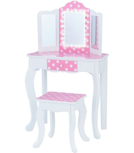 Aiuta a vestire la tua diva con le nostre stampe di moda Vanity e set di sgabelli con specchio luminoso! Il motivo a pois rosa e bianco dona alla vanità un aspetto incantevole e unico. Lo specchio luminoso funge da luogo eccellente per i bambini per controllare il loro riflesso e assicurarsi che saranno i Queens / Kings meglio vestiti alla festa! Dai alle tue dive una collezione di articoli unici come la loro personalità con la collezione di stampe di moda. Con motivi e colori esotici e audaci, la tua diva lascerà sicuramente un segno con i suoi nuovi mobili. Dai loro qualcosa su cui scatenarsi e entusiasmare oggi ed essere creativo come la loro immaginazione li porterà! Teamson Kids - La nostra storia inizia con un padre che si aspettava di più dai giocattoli dei suoi figli. Ha ritenuto che un buon design e un prezzo abbordabile non debbano escludersi a vicenda. La nostra passione è quella di creare un sorriso sui volti dei nostri piccoli e, giocando con il divertimento, possiamo ...