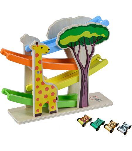 TEAMSON KIDS - Prescolare Giocattolo Rampa Da Corsa In Legno, Click Clack, Zig Zag Safari Automobili Di Animali