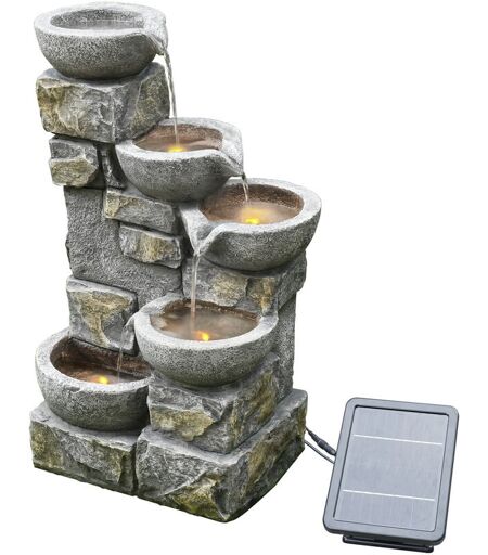 TEAMSON HOME Fontana D'Acqua a Energia Solare con Luci per Esterni e Giardino, Fontana a Cascata, Decorazione a Cascata Interna a 4 Livelli e