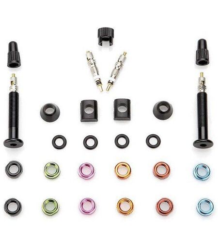 VersaValve è costituito da uno stelo valvola con una piastra di base ampia e robusta che può essere dotata di anelli di tenuta in gomma di forma diversa. L'ampia piastra di base assicura un solido contatto con il letto del cerchione e gli anelli di tenuta adattabili forniscono una tenuta ermetica su tutte le forme e profondità del cerchione.VersaValve funzionerà sulla maggior parte dei cerchi: montagna, strada o CX. Gli anelli di tenuta sono facilmente sostituibili e le diverse lunghezze dello stelo fanno sì che gli estensori delle valvole non siano più necessari sulle ruote a sezione profonda.Il kit VersaValve include quanto segue:2 steli2 gommini conici e 2 retangolari modulari4 nuclei di valvolaStrumento RVC ...