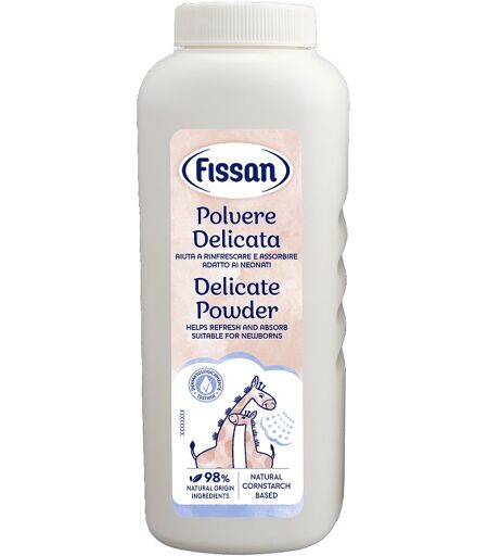 Fissan - Polvere Delicata - Descrizione Polvere delicata. La sua formula a base di amido di mais naturale è ideale per un uso quotidiano e per la protezione e il benessere delle zone particolarmente sensibili di neonati e bambini. Assorbendo l'umidità, aiuta a proteggere la pelle e a prevenire le i… ...