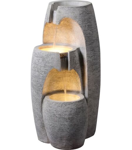 TEAMSON HOME Fontana da giardino elegante a 3 livelli con luci led effetto pietra in poliresina grigia compatta con flusso regolabile per esterni -