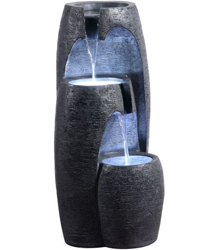 TEAMSON HOME Fontana da giardino a 3 livelli moderna con cascata luci led effetto pietra in poliresina nera compatta per esterno terrazzo o balcone -