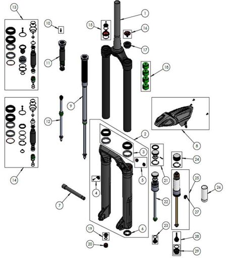 Ricambi dei componenti Forcelle Dvo. Onyx 38 Wp Ref 15 Service Kit ...