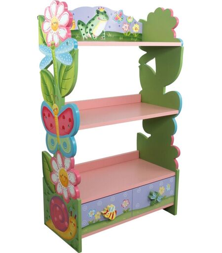 TEAMSON KIDS - Fantasy Fields di Grande Giardino Magico Libreria in Legno per Bambini, Libreria a 3 Livelli e Cassetto, Organizzatore di Libri con