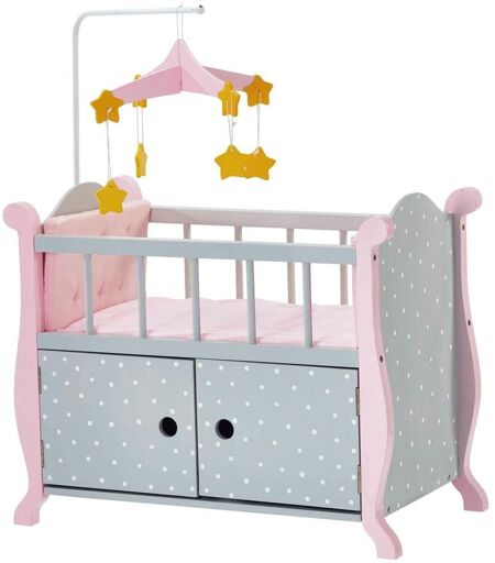 La tua dolce bambola bebč vuole una culla tutta sua? Regalale questo lussuoso modello grigio a pois bianchi e accenti rosa. Č fornito di giostrina abbinata rosa con stelle gialle e di un armadietto sottostante con due sportelli che si aprono su uno spazio che puň contenere la biancheria di scorta. La bambola potrŕ addormentarsi sul soffice materassino rosa inserito nella culla. 5715 (L) x 3112 (W) x 7938 (H) cm - Bambola non inclusa. Culla con giostrina sponde grigie imbottitura spazio contenitore inferiore che si apre con 2 sportelli. Struttura in legno sicura e robusta realizzata in MDF ecologico (CARB-P2) con vernici senza piombo - conforme CPSIA EN71-1-2-3 ASTM F963 Tempo previsto per l'assemblaggio: 15 minuti Confezionato con istruzioni per l'assemblaggio passo passo. Consigliato dai 3 anni in su ...