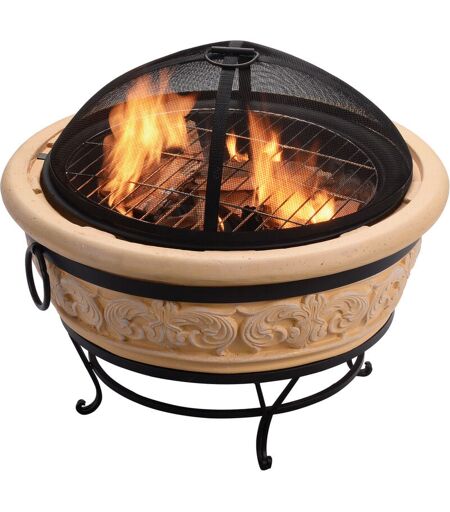 TEAMSON HOME Giardino Braciere Grande a Legna, Camino e Stufa a Legna, Mobili da Esterno, Bruciatore a Legna in Metallo con Attizzatoio e Coperchio, Naturale