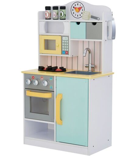 Prepara i pasti migliori della tua vita con la cucina da gioco in legno Teamson Kids. La cucina è semplicemente adorabile e le manopole attaccate possono essere girate per creare l'illusione di accendere davvero un forno! Il forno si apre con una maniglia giallo chiaro ed è abbastanza grande da preparare un banchetto che piacerà a tutta la famiglia. I due fornelli sul fornello sono il luogo perfetto per preparare delle deliziose zuppe o il tuo tè serale! C'è anche un forno a microonde con un numero adesivo e un timer per creare l'illusione che un oggetto venga effettivamente riscaldato. Tieni traccia del tempo di gioco con l'orologio sopra il set da cucina e assicurati di mettere dei fiori o altri soprammobili sulla superficie di legno, che è destinata a ulteriore spazio di archiviazione o decorazione! Teamson Kids realizza prodotti di altissima qualità e artigianalità da oltre 20 anni. Siamo orgogliosi dei nostri mobili in legno di alta qualità per bambini realizzati da esperti e ci ...