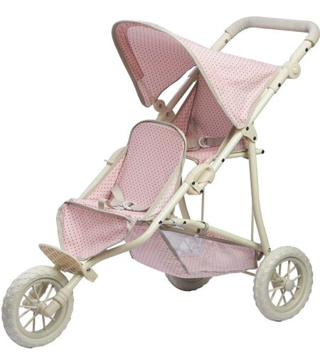 Con le bambole in braccio č difficile fare le commissioni! Ma adesso se ne possono portare a spasso due con il passeggino sportivo doppio per bambole bebč Polka Dots Princess in rosa e grigio; cosě nessuna rimane a casa. Passeggino rosa con pois grigi e interni foderati in grigio; con due posti uno in basso e uno in alto. Sulla cima c'č il parasole abbastanza grande da proteggere entrambe le bambole. Tre robuste ruote bianche sostengono il passeggino e permettono di spingerlo senza alcuno sforzo. Al di sotto abbiamo uno spazio per contenere le cose delle bambole e come sappiamo bene due bambole hanno bisogno di tante cose! Renditi la vita piů semplice da subito quando vai a spasso. Le bimbe ameranno portare la loro bambola preferita a fare una passeggiata con questo passeggino della giusta misura. Passeggino pieghevole doppio per bambole. Con impugnatura regolabile parasole retraibile struttura in ferro e tessuto in poliestere richiudibile con cestino contenitore. Bambola non inclusa. ...