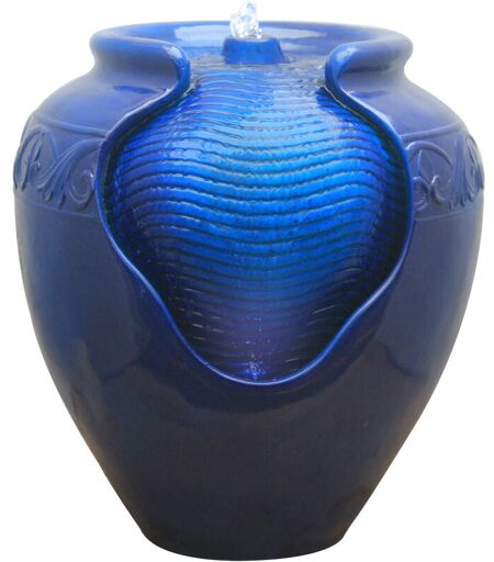 TEAMSON HOME Fontana d'Acqua con Luci per Giardino, Piccola Fontana d'Acqua a Piani per Esterni, Vaso Blu, Cascata per Interni e Ornamento con Pompa, Arredamento