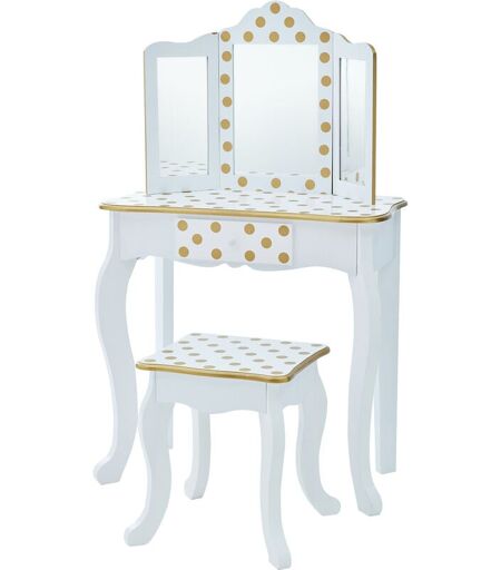 TEAMSON KIDS - Toletta in Legno Oro con Sgabello e Specchio per Bambini TD-11670M