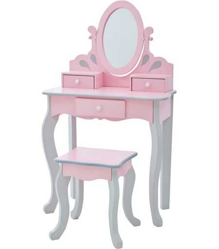 Concedi alla tua piccola principessa un posto elegante per farsi bella con questo set console da trucco e sgabello rosa. Splendido rosa con decorazione in grigio a lato dello specchio per aggiungere un tocco di eleganza. Viene fornito con un robusto sgabello uno specchio girevole e tre cassetti per riporre tutti i suoi accessori di moda preferiti. La console da trucco ha uno specchio ovale in plexiglas infrangibile per una migliore riflessione. Il set da trucco include console da trucco e sgabello. È un accessorio perfetto per la cameretta di una bimba. Il set da trucco ha angoli arrotondati e gambe smerlate sia nella console da trucco che nello sgabello. È necessario il montaggio da parte di un adulto. Consigliato dai 3 anni in su ...