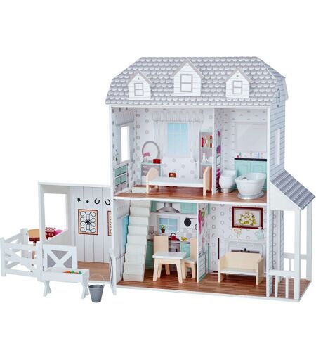 TEAMSON KIDS Olivia's Little World Grande Casa delle Bambole in Legno per Bambini con 3 Livelli con Giardino e 14 Accessori Interattivi per Mobili per Bambole da
