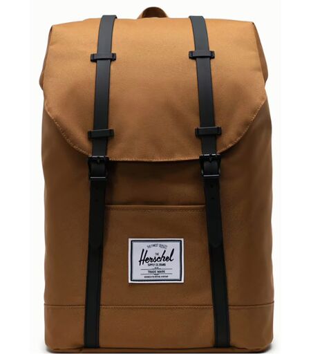 Zaino Herschel Retreat Standard color cammello.Fodera a righe con marchio.Custodia imbottita e foderata in pile per laptop da 15 pollici.Chiusura con coulisse.Cinghie di chiusura magnetiche con fibbie in metallo.Spallacci sagomati.Tasca frontale.43.2 cm (A) x 30.5 cm (L) x 15.2 cm (P), 19.5 litri. ...