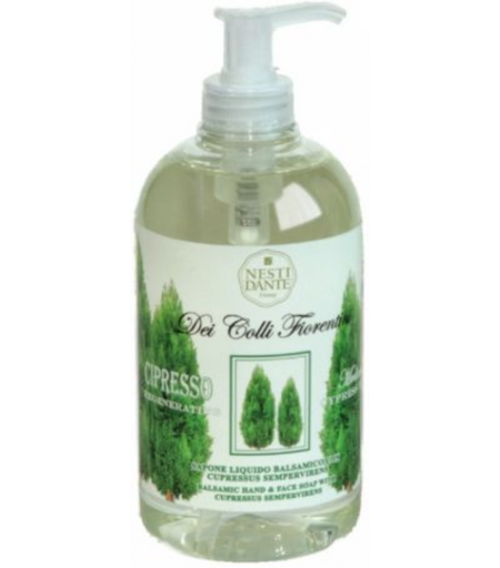 Nesti Sapone Liquido Cipresso Soap: sapone liquido fresco e delicato con estratto di cipresso, ideale per mani e corpo. Formula naturale senza parabeni, adatta a pelli sensibili. Deterge e profuma con note mediterranee. Formato: flacone dispenser 500ml ...