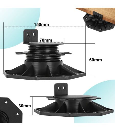 RANDACO Base di appoggio per terrazzo regolabile con piedistallo di livellamento cuscinetto base base per legno wpc 30-60 mm 50 pezzi -