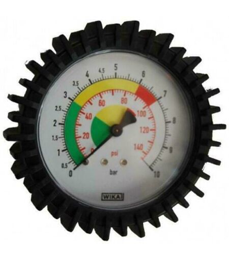 Descrizione Manometro con attacco posteriore 1/4" maschio. Dotato di guaina protettiva. Scala di pressione in bar e psi. Fondo scala:10 bar( 144 psi). Diametro: 80mm. ...