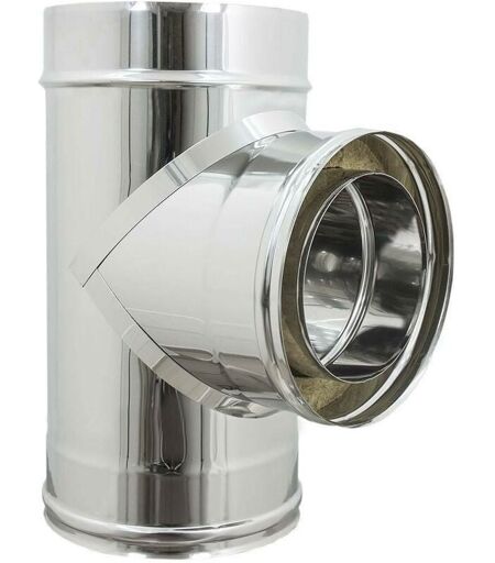 Descrizione DERIVAZIONE A T INOX DOPPIA PARETE DA 100MM Derivazione a T con scarico condensa su canna fumaria a doppia parete metallica, isolato con lana di roccia spessore 25 mm, con parete interna ed esterna in acciaio INOX. E' la soluzione ideale per la realizzazione di camini esterni e interni con coibentazione Il raccordo a T consente il collegamento tra la canna fumaria in verticale e il canale da fumo orizzontale Raccordo a t in acciaio inox con scarico condensa Diametro 100 mm Attacchi: alto - femmina; laterale - femmina; basso - maschio per inserimento del tappo condensa incluso. Fornito senza guarnizioni I tubi per scarico fumi in acciaio inox, oltre ad essere resistenti alle alte temperature, sono resistenti alla ruggine, alla corrosione, ai graffi ed agli sbalzi termici , non assorbono odori e non cedono sostanze dannose all'ambiente in cui vengono installati, si mantengono inalterati nel tempo ed assicurano facilita' di pulizia. Classe di resistenza alla corrosione : V2 ...