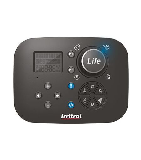 Water Budget. Grazie a questa funzionalità potrai aumentare la durata dell'irrigazione da 0% a 200%: questa funzione modifica solamente la durata, pertanto potrai tornare sempre alla programmazione originale ripristinando il 100%. Programmi Indipendenti. 2 programmi indipendenti e 3 partenze senza problemi di sovrapposizione (un programma parte solo quando ha finito il precedente). Non servono batterie. Con LIFE TM non avrai bisogno di batterie perché, con l'opzione "Super Cap" la centralina manterrà memoria di data e ora per più di 24 ore in caso di mancanza di corrente. Facile da installare, facilissima da programmare. L'installazione e la successiva programmazione sono molto intuitive grazie al comodo display LCD, al dial e al tasto "Help". Predisposizione Wi-Fi locale. Il modulo Wi-Fi opzionale permette alla tua LIFE TM di essere comodamente controllata dal tuo device grazie alla nuovissima APP Irritrol. Programmazione semplice ed intuitiva con icone facili da identificare 4, 6, 8 ...