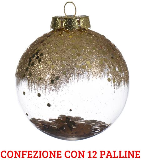 PERAGASHOP 12 Palline Trasparenti Con Fiori E Lustrini Oro 8 Cm Addobbi Natalizi