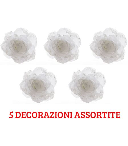 PERAGASHOP 5 Decorazioni Rose Appendibili Con Clips 14cm Con Glitter Bianco Inverno Addobbi