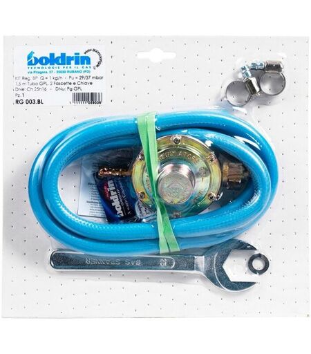 BOLDRIN KIT Regolatore per bombola gpl 1 KG Taratura Fissa con tubo gomma gpl 2 mt. + 2 fascette + chiave bombola