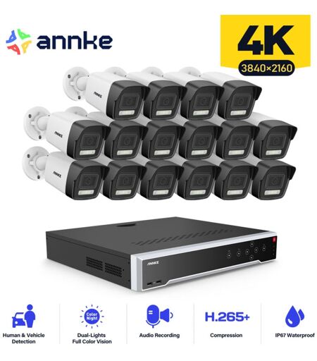 ANNKE Kit di Videosorveglianza Esterno 32CH nvr 16×Telecamere Avviso E-mail,Visione Notturna,Rilevamento Movimento,Sistema di Sicurezza Telecamera di