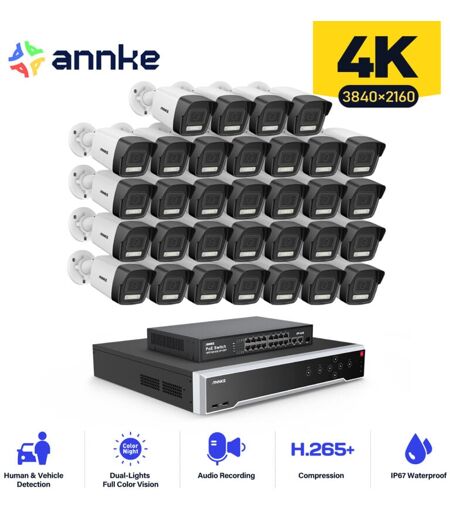 ANNKE Kit di Videosorveglianza Esterno 32CH nvr 32×Telecamere Avviso E-mail,Visione Notturna,Rilevamento Movimento,Sistema di Sicurezza Telecamera di